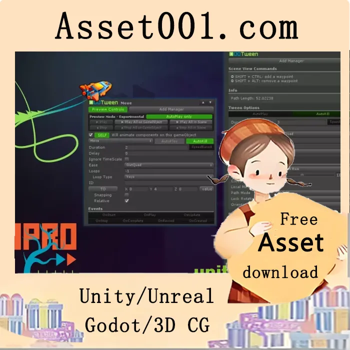 DOTween Pro v1.0.386(2025年12月8日发布)是一款专为Unity引擎设计的高级动画解决方案,支持Unity 2019.4.0及以上版本。该资源包在免费基础版本DOTween的基础上进行了深度扩展,提供了丰富的可视化与脚本化动画功能,支持对游戏对象进行移动、震动、淡入淡出、旋转、相机属性调整等多种动画操作,同时支持在编辑器中绘制路径并实现路径跟随。