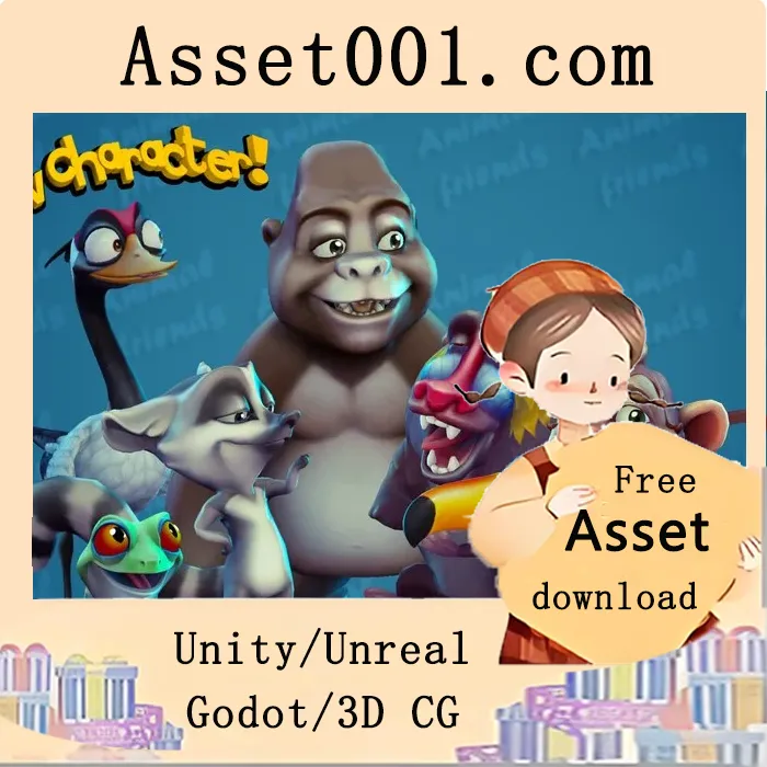 Animal Friends: Wild Animals(7个角色)v1.5 是一款专为Unity引擎设计的3D卡通动物角色资源包,包含7个独立角色:鹤、青蛙、大猩猩、猴子、狐猴、曼德拉猴和鹦鹉。每个角色均配备符合其性格特征的完整动画,支持动态动作表现,具备高度的可定制性。