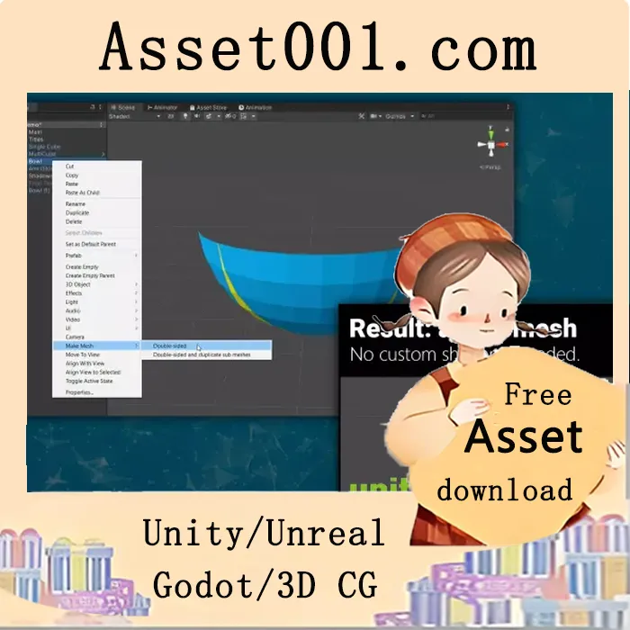 该工具通过生成新的网格数据,自动翻转顶点、三角面、UV坐标等信息,确保双面渲染的几何完整性。原始网格与生成的双面网格以独立的 Mesh Asset 形式并存,避免对原资产造成修改,保留原始数据结构。