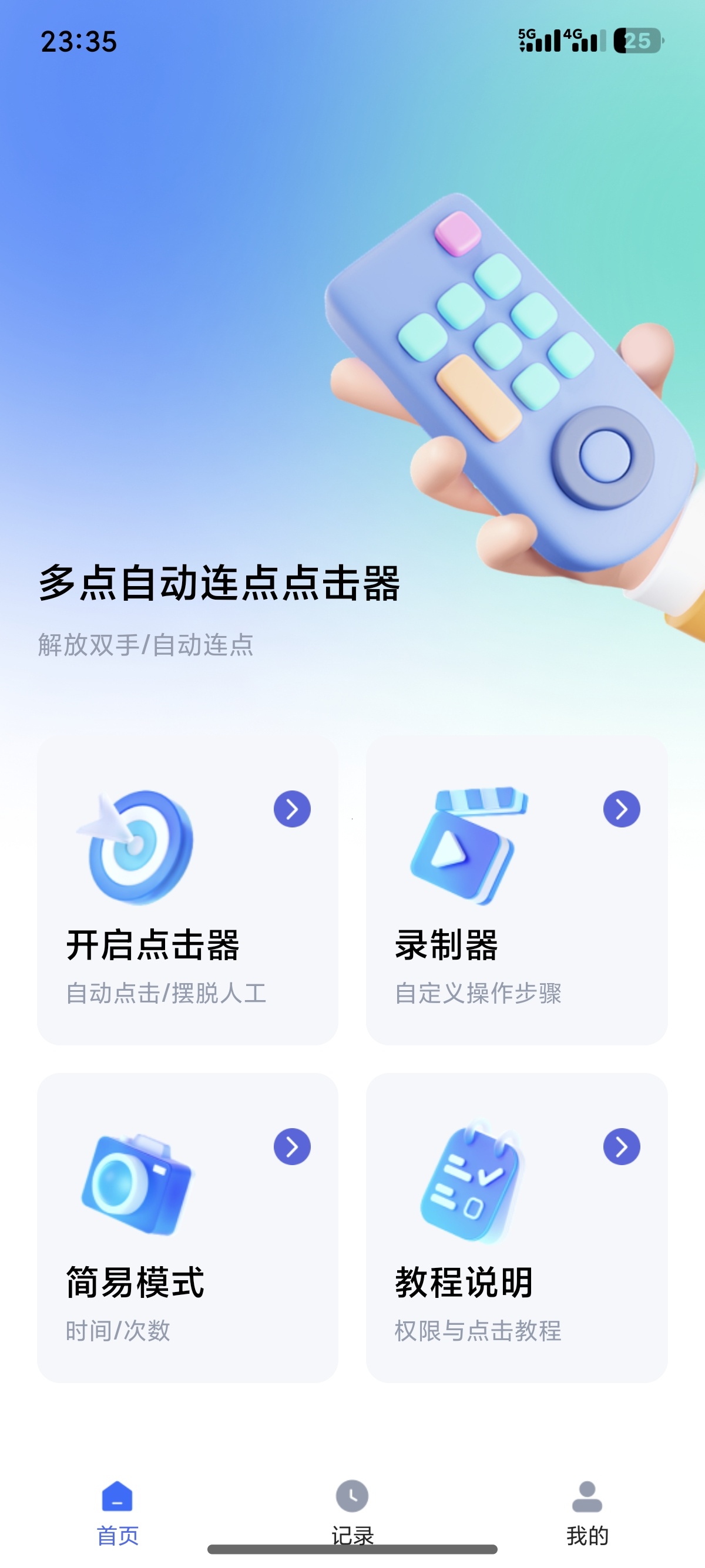 DreamCatcher 手机软件 2025-08-19 19:47:42 多点自动连点点击器|最新纯净破解激活版免费下载 多点自动连点点击器是一款功能丰富的手机连点器应用,提供自动连点器工具和丰富的脚本资源,适用于多种场景。用户可以自定义连点器参数,打造个人专属的连点记步功能,使手机屏幕连点操作更加便利。 该软件内置简单的连点器滑动操作,轻松实现分步连点执行。版本信息见下载列表。 免责声明:本资源来自互联网,仅供个人学习交流、测试使用。请在下载后24小时内删除,支持购买正版。 下载说明本站收录且只收录免费的下载链接,基本所有的链接均已验证,全部为免费下载访问链接 注意下载前,请注意查看版本信息,每个链接里面可能包含个网盘的下载地址,里面的内容是一致的 更新时间版本信息下载链接 2025年08月19日多点自动连点点击器 解锁去掉会员充值使用功能点击下载 2025年08月20日多点自动连点点击器 解锁会员 解放双手 自动化脚本点击下载 待iNeets更新待iNeets更新待iNeets更新