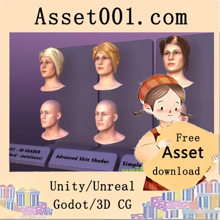 资源包按 SRP 和 URP 两个版本分别封装,用户可直接双击解压使用,无需额外配置。所有着色器均经过优化,适用于高保真角色渲染场景,尤其适合需要真实皮肤质感和自然毛发表现的项目。
