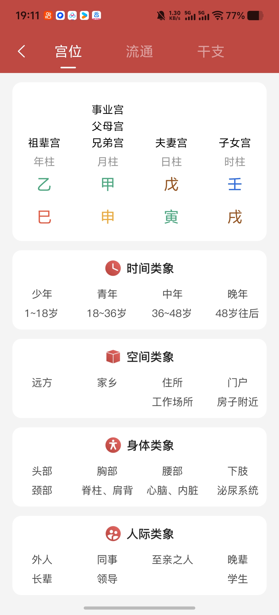 提供五运六气查询功能,包括岁运、主运、客运、主气、客气、客主加临等。