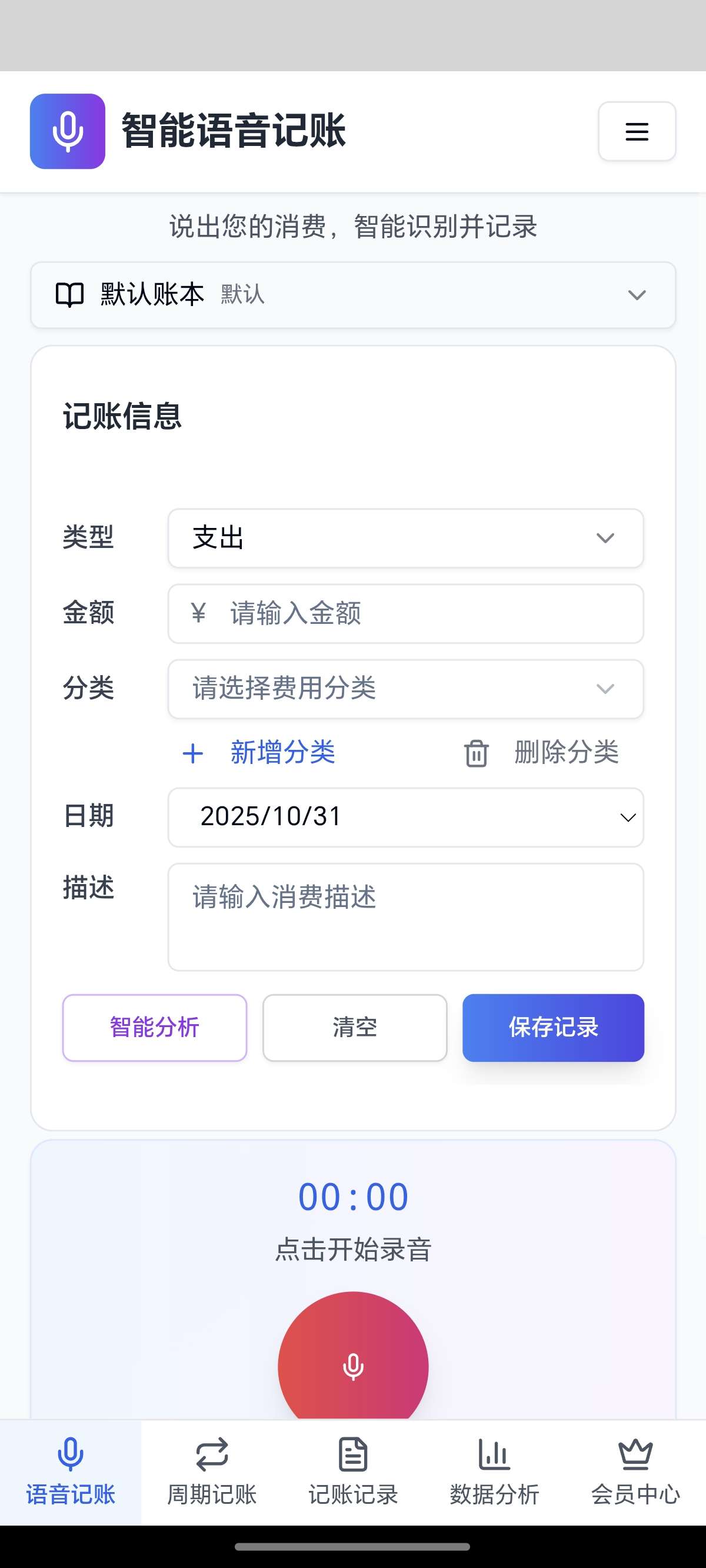 2. 极简操作流程:打开应用→语音输入→点击保存,三步完成记账