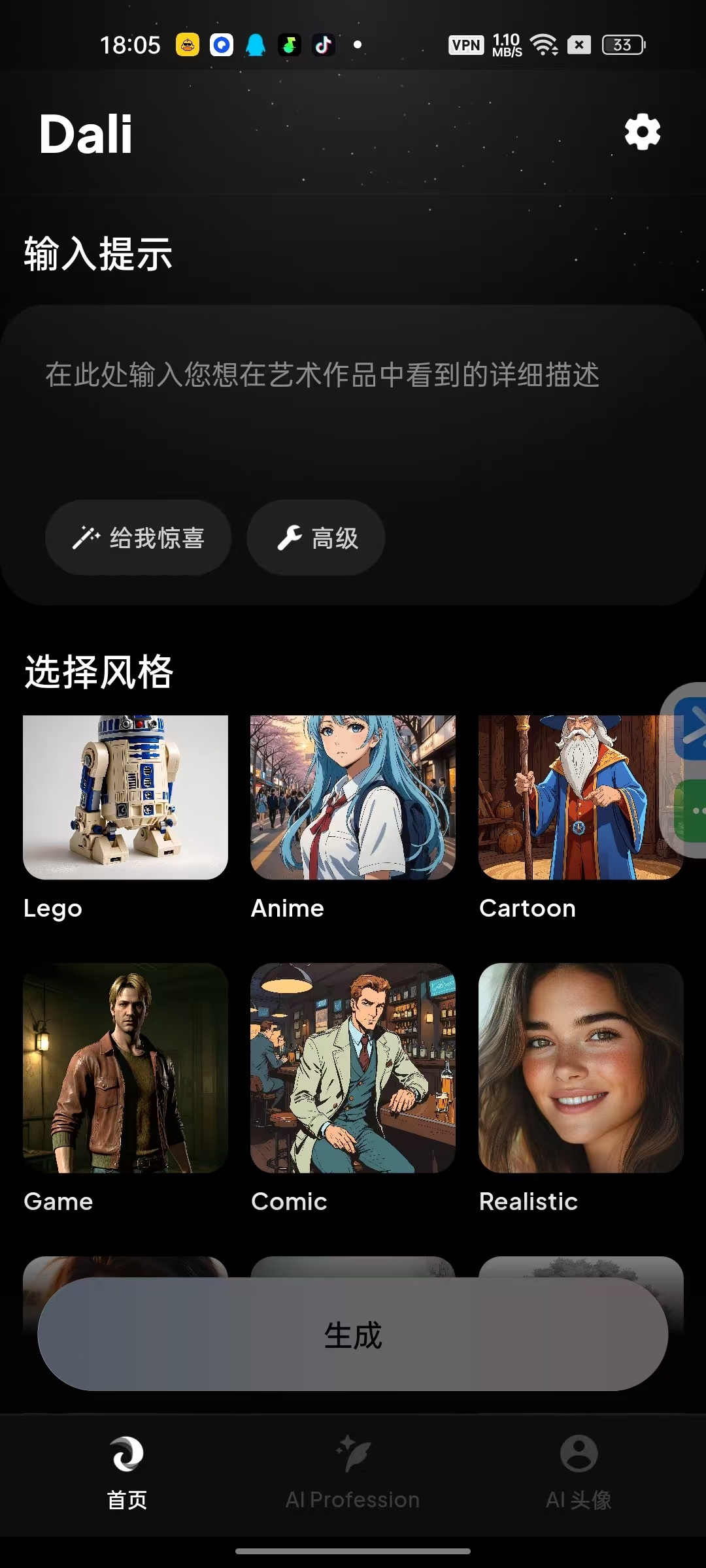Dali是一款多功能AI图像生成工具,能够将文字描述转化为高质量视觉图像。该软件支持多种创意场景应用,包括但不限于: