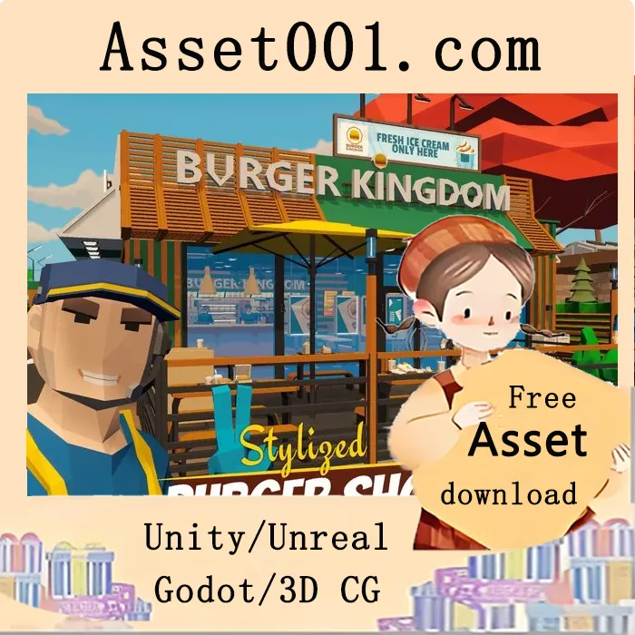 资源包支持直接导入 Unity 引擎,可轻松集成至3D场景中,适用于模拟经营、城市建造、生活化体验类游戏开发。更多信息可访问:https://assetstore.unity.com/packages/3d/environments/urban/modular-burger-shop-environment-329847。