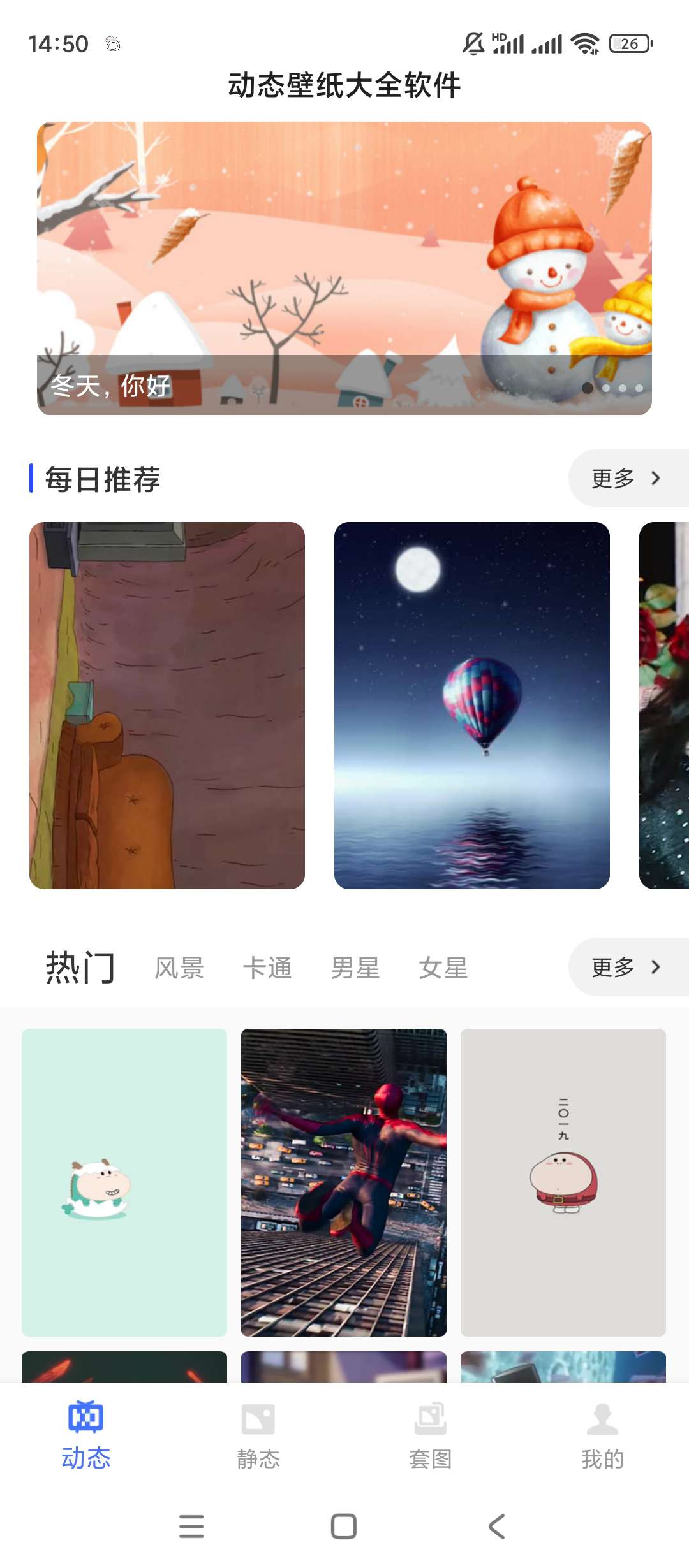 同时提供多种主题的动态壁纸,包括卡通、游戏、爱情等类型。